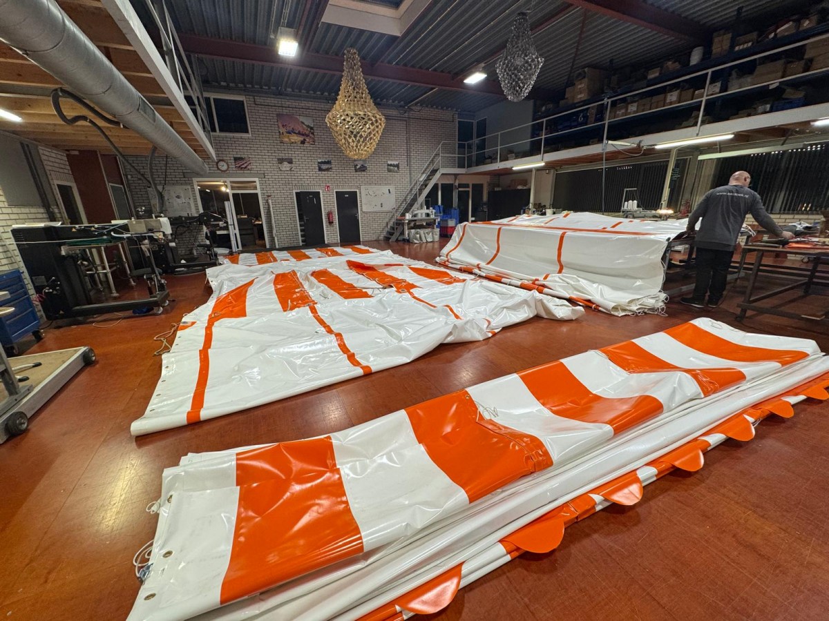 We zijn trots om te kunnen melden dat we Zeil-Doek in Montfoort de opdracht hebben kunnen geven om twee nieuwe tentdelen voor de 15 meter tent te maken! De nieuwe tentdelen zijn ter vervanging van de meer dan 30 jaar jaar oude tentdelen die nog dateren van de Sterkste man tijd en echt op aan het raken waren. De nieuwe tentdelen krijgen geintegreerde nooduitgangen zodat we kunnen blijven voldoen aan de toenemende veiligheidsvoorschriften.